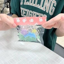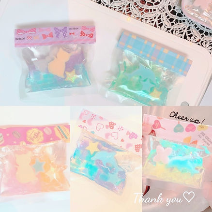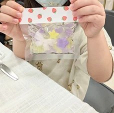 キャンディーバッグ石けんは、お菓子の詰め合わせを作るように、お好みの色や形の小さな石けんを選んで作ります。