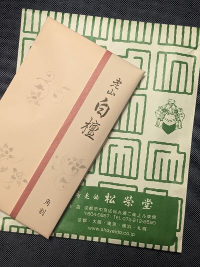 さて、お土産やさんが並んでいるところを歩いていたら、すっごく良い香りが漂ってきまして、有名な松栄堂さんでした。