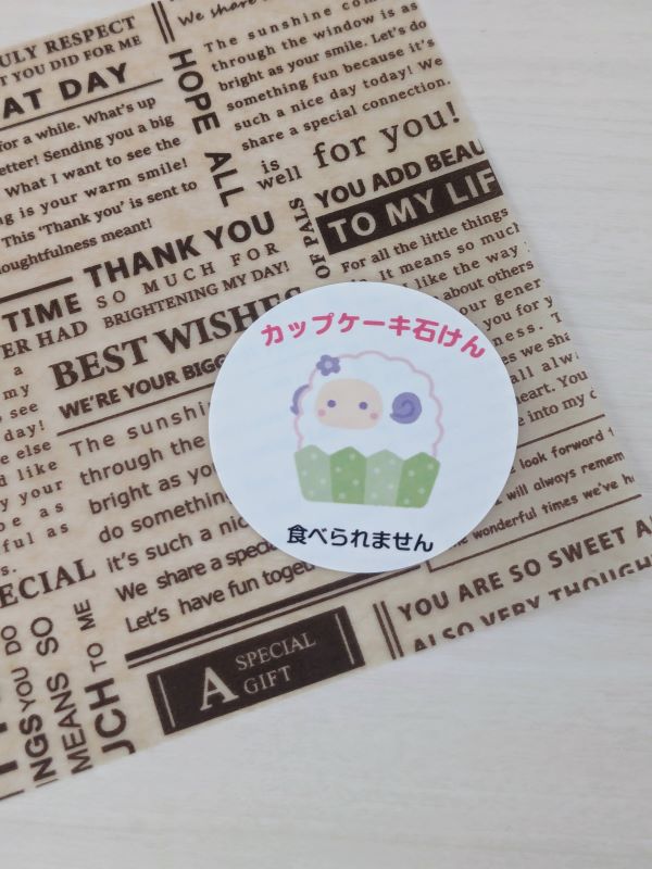 次からカップケーキ石けんづくりのワークショップをする時は、この可愛らしいシールが持ち帰り袋に付きますので、どうぞ楽しみにしていてください。