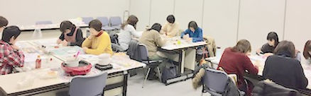 この時は、南相馬市のアロマテラピーインストラクターさんのご協力で花材を頂き、オーガニックな雰囲気に作製。場所もご提供いただき、一般の方も一緒に参加されて皆さんで楽しく作製しました。