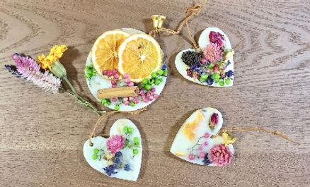 お花とロウの癒しの飾り、アロマワックスサシェのご紹介です。