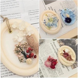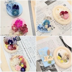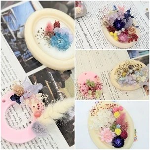 専用の型を使ってプレート状に作るのが定番で、使うお花などによって作風もいろいろあります。