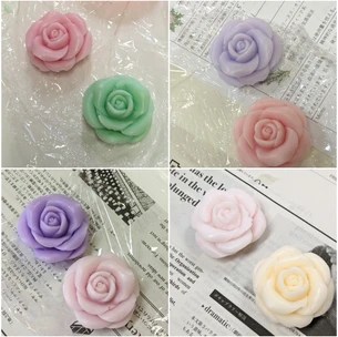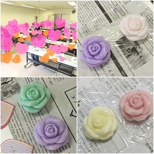 ローズの石けんづくりのご案内です。花びらまで立体的にできる専用の型を使って作ります。
