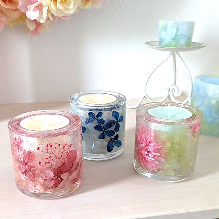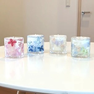 アロマとお花を使った作品「ジェルアロマキャンドル」のご紹介です。