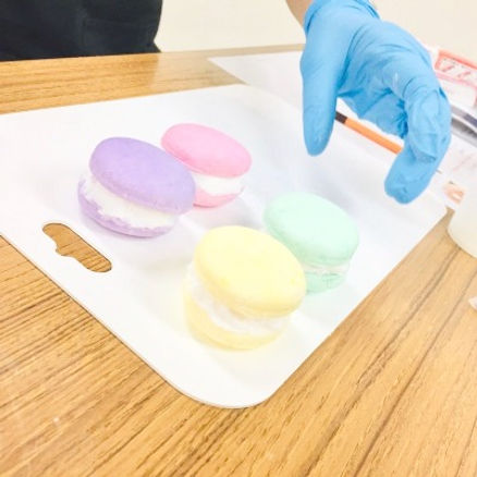 マカロンの形は何とも言えないかわいらしさです。大人の女性の方にもたくさん作っていただいています。「おままごとしているみたい」と童心にかえってしまうようで、ニコニコ笑顔で作ってくださいました。