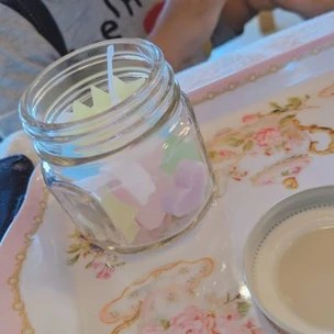 ガラス瓶の中にキャンディーが入ったようなデザイン、キャンディーキャンドル