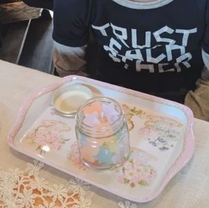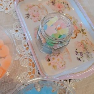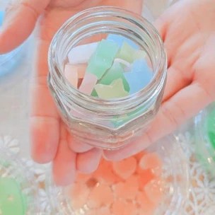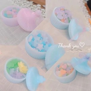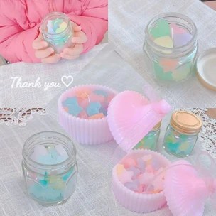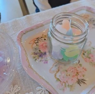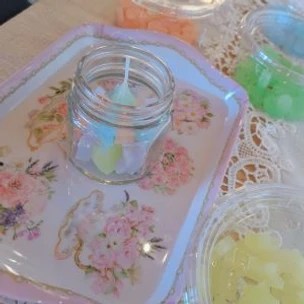 ハートや星の小さなキャンドルを入れて、色や雰囲気をアレンジしていただけるワークショップです。