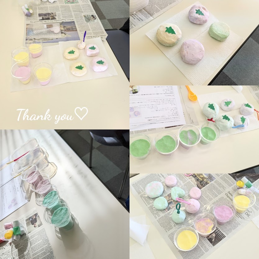 【バスボム出張教室の注意点】 作品は湿気に大変弱いため、発泡を防ぐための会場の湿気対策が非常に重要になります。ご依頼の際は、会場環境について事前にご相談ください。