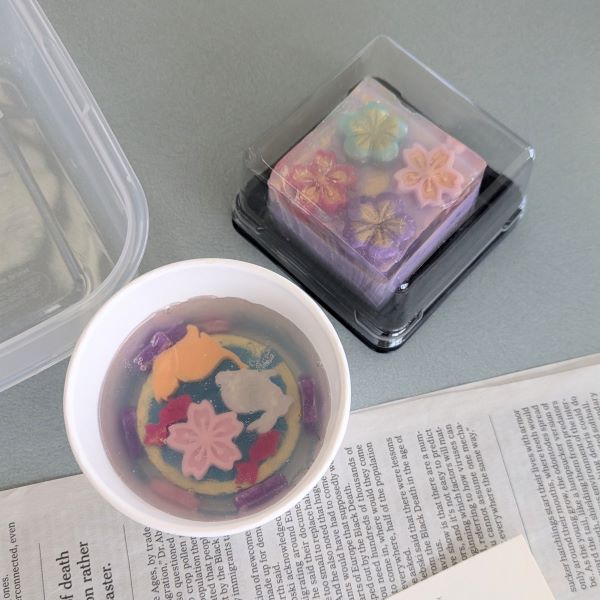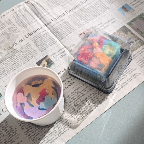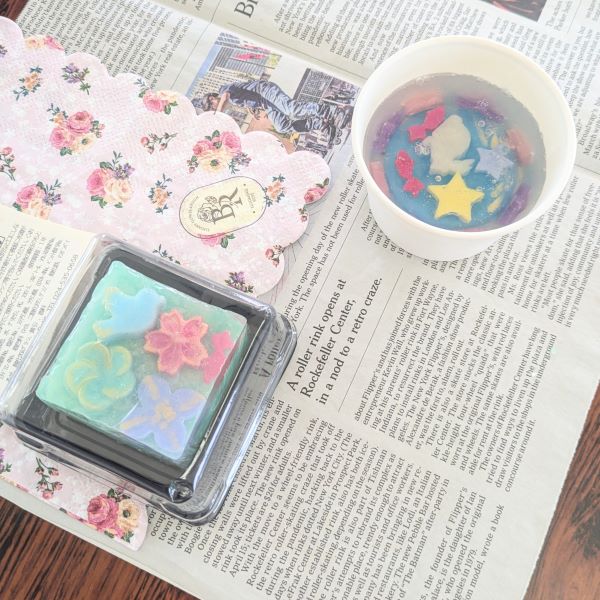 水ようかん風石けんづくりは簡単にできるので、年代問わず、それぞれのデザインで作りながら、とても盛り上がっていただけたと思います。職員の皆様にも大変お世話になり、明るい雰囲気で最後まで進めることができました。
